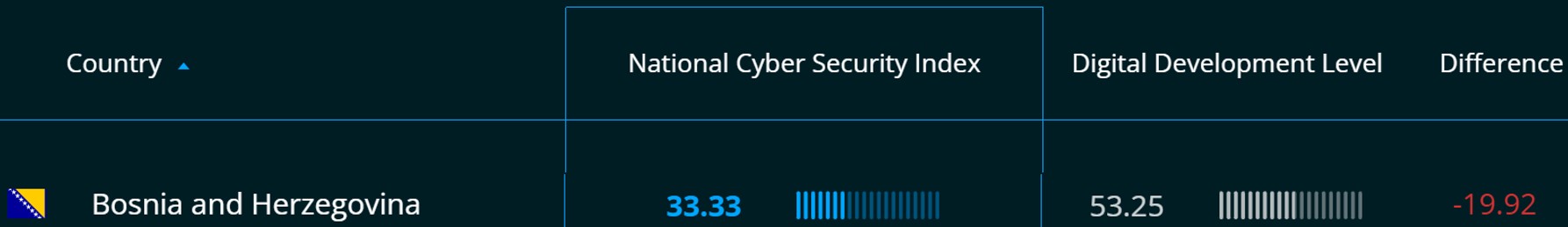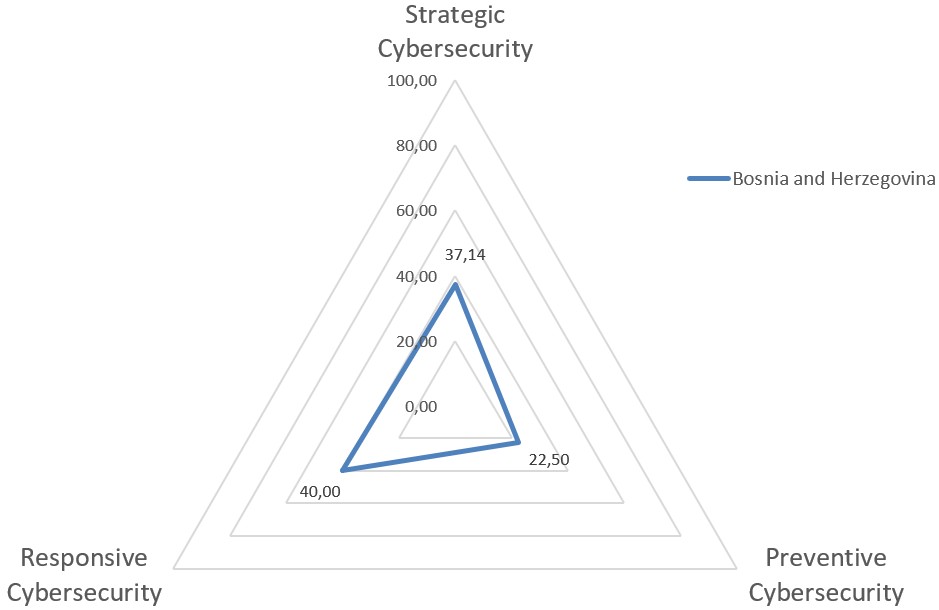 Bosnia and Herzegovina demonstrates a higher level of responsive cybersecurity, followed by a decreasing emphasis on strategic and preventive cybersecurity. Cybersecurity development lags behind its digital development, becoming an unignorable risk in the overarching digital transformation process.