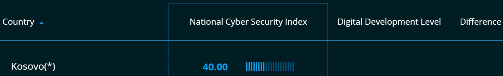 Kosovo demonstrates a 40.00% completion rate of eGA’s NCSI. Due to its heterogeneous international recognition, it is not presented in the ITU’s GCI, nor in the EGDI and NRI digital development metrics. Therefore, it is not possible to compare its cybersecurity and digital developments within the national digital transformation efforts.